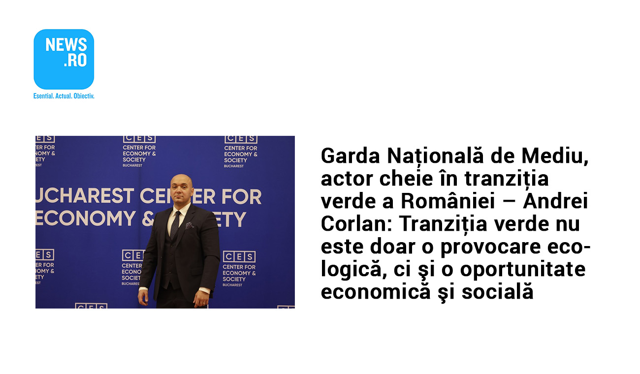 October 12, 2025 CES in Media 18102025 HP Highlights The National Environmental Guard, a key actor in Romania’s green transition – Andrei Corlan: The green transition is not only an ecological challenge, but also an economic and social opportunity By CES Bucharest Comments